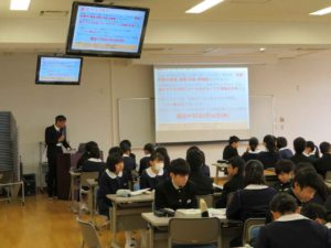 滋賀大学教育学部附属中学校では、平成18年度よりエネルギー環境教育に取り組むため、総合的な学習の時間に「科学技術科」を創設しました。以来、弛まず実践を継続しています。 「科学技術科」は、エネルギーと社会・環境のかかわりについて基礎的な知識の習得と現状を認識し自分で考えて判断しようとする態度の育成を目標とし、社会、理科、技術分野それぞれの視点から内容を整理し、各教科を担当する教員のチィームティーチングで授業を行っています。各教科で学んだ内容をもとにした実践の場であるBIWAKO TIMEや、情報の取り扱いを学ぶ情報の時間と連携をとりながら、エネルギー問題を考える上で必須となる知識を確実に身につけさせ、生徒自身が深く考え議論をしながら現代社会でのエネルギーに関する問題に決まりきった答えなど存在しないことを学ぶ学習の場として「科学技術科」を展開しています。平成29年度~令和元年度には経済産業省資源エネルギー庁のエネルギー教育指定校の認定を受けて、地域に関する題材を多く取り上げています。