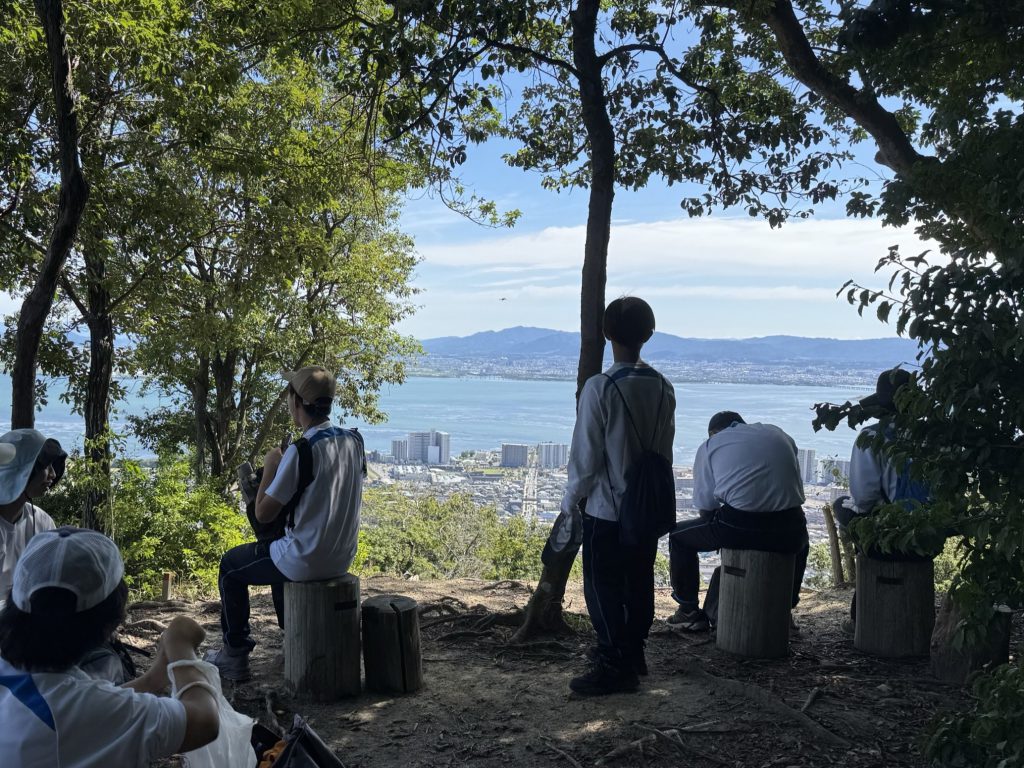 高等部では毎年、一泊二日の登山合宿を行っています。今回は本番前の力試しということで近江神宮の近くの宇佐山に登りました。朝のトレーニングで鍛えてきた体力や筋力を生かし、山道をしっかりと歩き、参加した生徒全員が登頂できました。みんなで励まし合って登った頂上での景色はとってもきれいでした!登山の良さは、活動内容とゴールの分かりやすさと、やっぱりこの達成感なのかもしれません。本番の御在所岳はもっと凉しくなってから登ります。日々の運動に加え、運動会や登山合宿といった行事を通して、更にたくましい身体づくりを目指します。