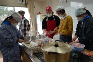 にじの家合宿を行いました。買い物、調理、洗濯、掃除など自分の力で挑戦しました。晩ご飯のメニューは、カレーライス、野菜炒め、オムライス、餃子、うどんや焼きそばなどバラエティに富んだ内容で、どの子も一生懸命取り組んでいました。 夜はみんなで考えたお楽しみにも取り組みました。翌朝も朝ご飯を自分で作って食べ、朝のトレーニングに間に合うように準備してできました。2階には一人部屋があるので、挑戦できる人は一人で料理したり寝たりしました。ぜひ、この経験をおうちでも続けて、定着できるようにして欲しいです。