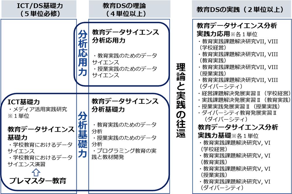 学校単位で多様な教育的ニーズに対応した組織的な教育実践を創出できるスクールリーダーや,地域レベル(中学校区や自治体等の圏域)も含む学校改善を牽引できるトップリーダー(地域リーダー)の養成を目指します。さらに,本プログラムにおいて教育におけるデータサイエンス実践学を修得し,エビデンスベースの観点を身につけることで,学校改善や教育改善の視点をもった教員,教育施策形成の司令塔となる教員,学校改善に資するリーダー的教員,データリテラシーに基づく調査・収集の担当教員,各学校におけるデジタルコンテンツ利活用環境のカスタマイズが可能な教員等を養成します。
