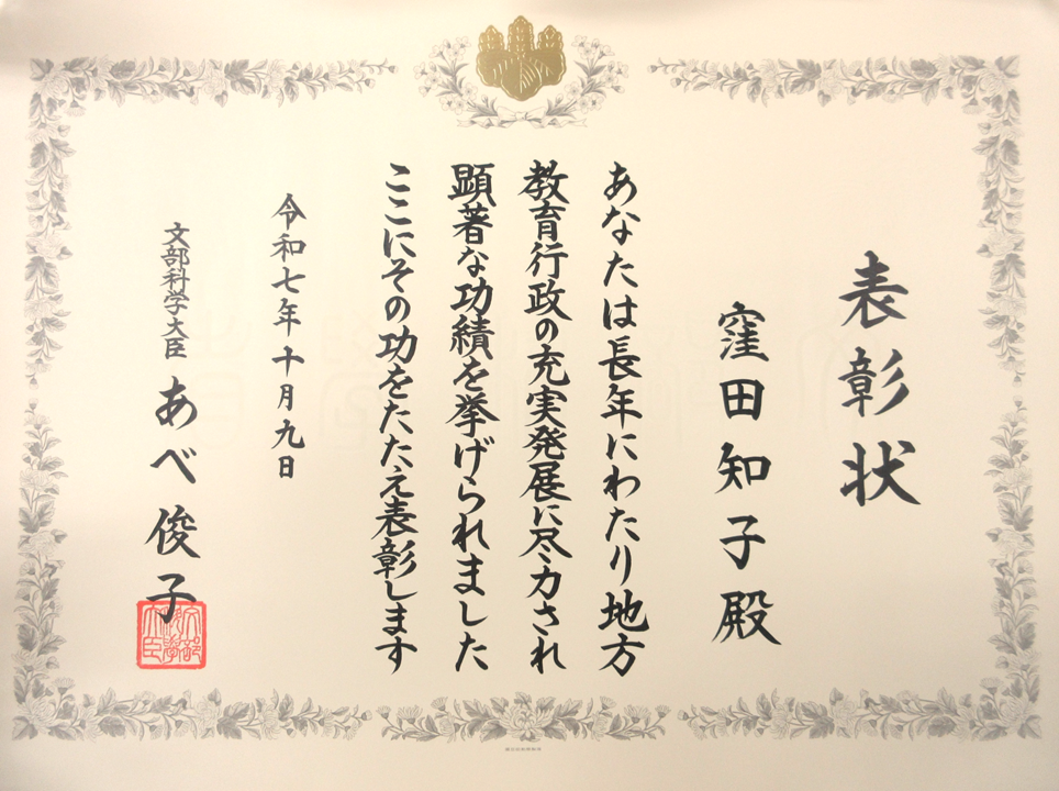 教育学部 窪田知子教授が、令和7年度「地方教育行政功労者表彰」(文部科学大臣表彰)を受賞しました。
