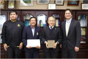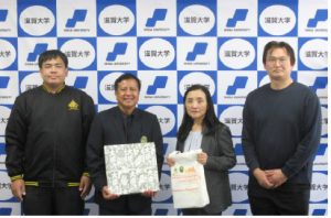海外交流協定校であるタイ国のチェンマイ・ラチャパット大学の Sanya Sasong 人文社会学部長が来日され、2025年11月13日に彦根キャンパスにおいて竹村学長を、翌14日には久保教育学部長を表敬訪問され、両大学での交流について会談をされました。