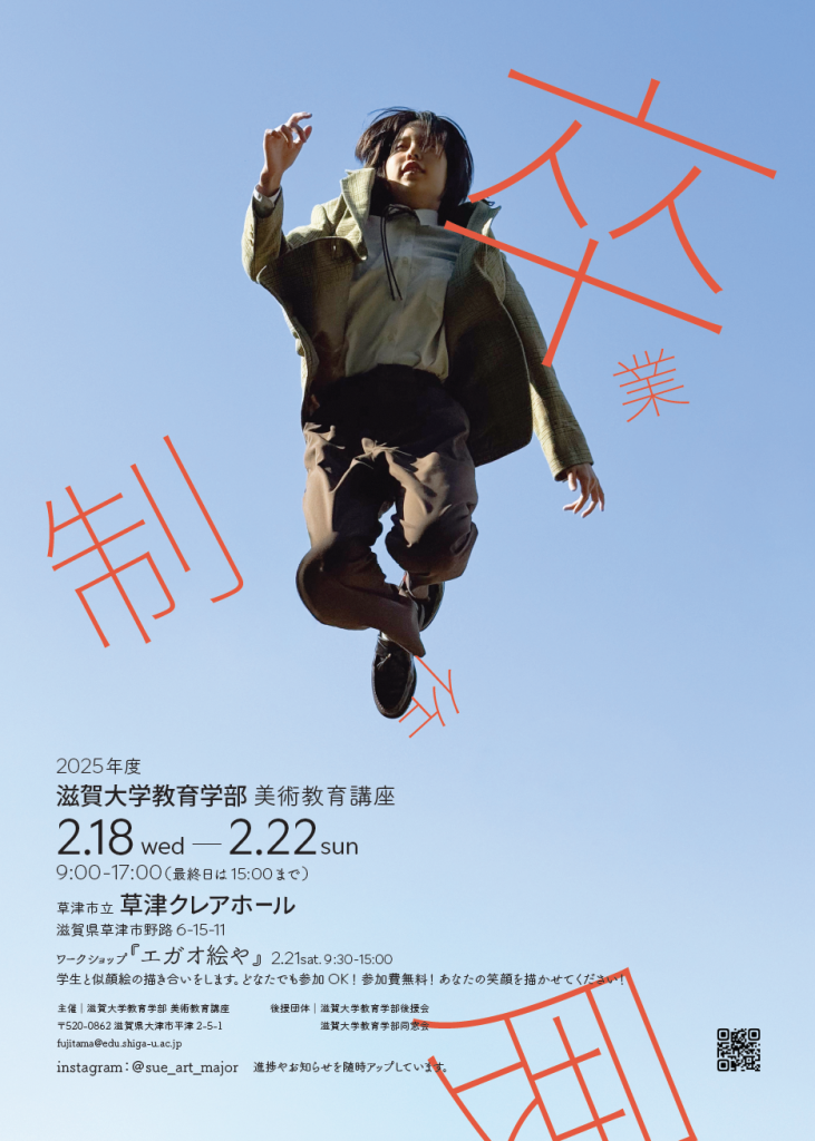今年の卒業制作展は、4回生の卒業制作展と、3回生の進級制作、2回生運営のワークショップ 「エガオ絵や」を開催します。学生たちの研鑽の成果をぜひご覧ください。