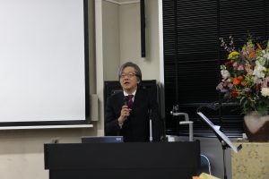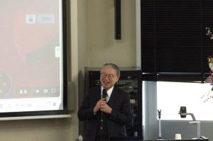講演中の岸本教授
